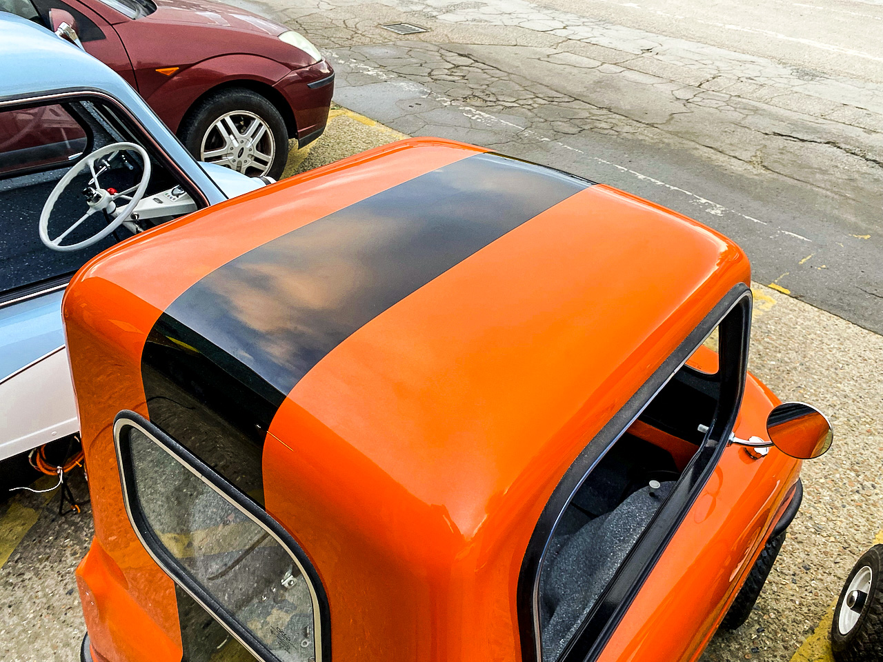Painted in Kawasaki Wildfire Orange with a Black Stripe down the middle